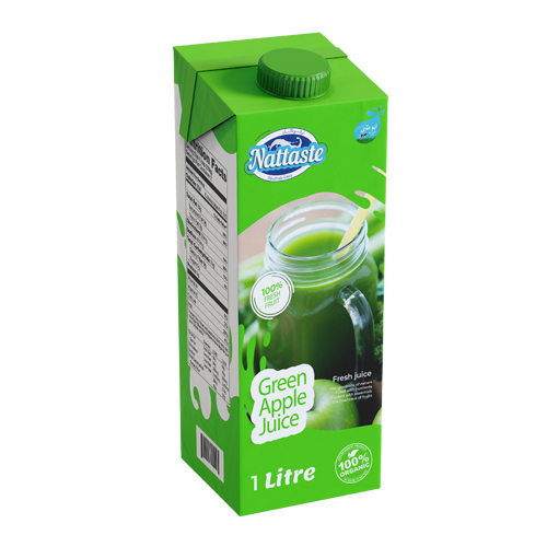 عصير تفاح أخضر 100% طبيعي طويل الأجل من عصير مركز. معبأ في جو معقم.