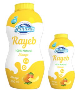 Raspberry flavored Rayeb from fresh 100% pasteurized and homogenized low fat cow’s milk, Fat 1.2% max, Solids Not Fat 8.2 Min.