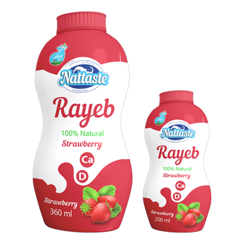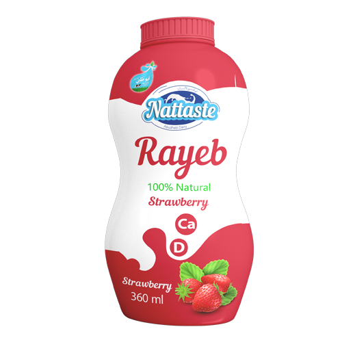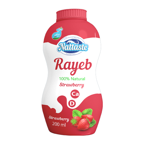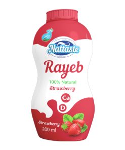 Strawberry flavored Rayeb from fresh 100% pasteurized and homogenized low fat cow’s milk. Fat 1.2% max, Solids Not Fat 8.2 Min.