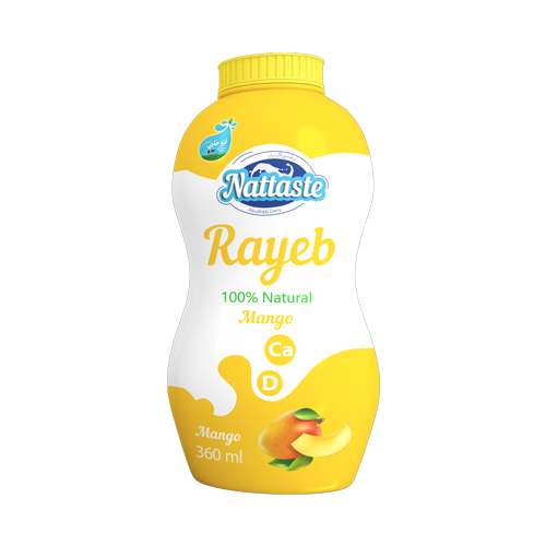 Rayeb with mango flavor from fresh 100% pasteurized and homogenized low fat cow’s milk, Fat 1.2% max, Solids Not Fat 8.2 Min.